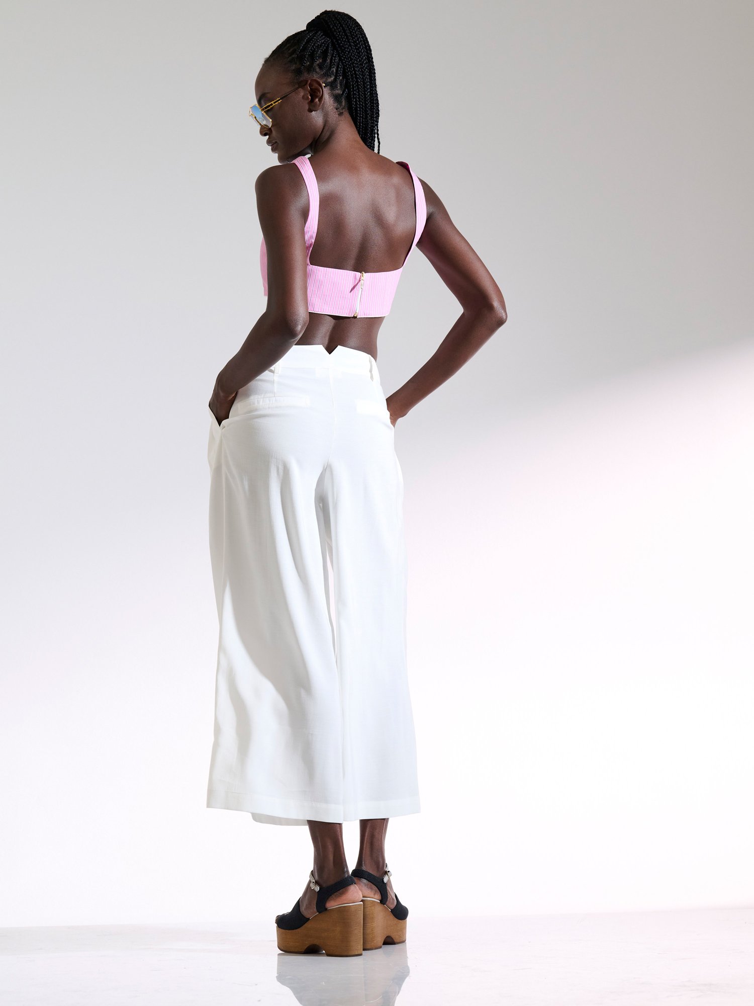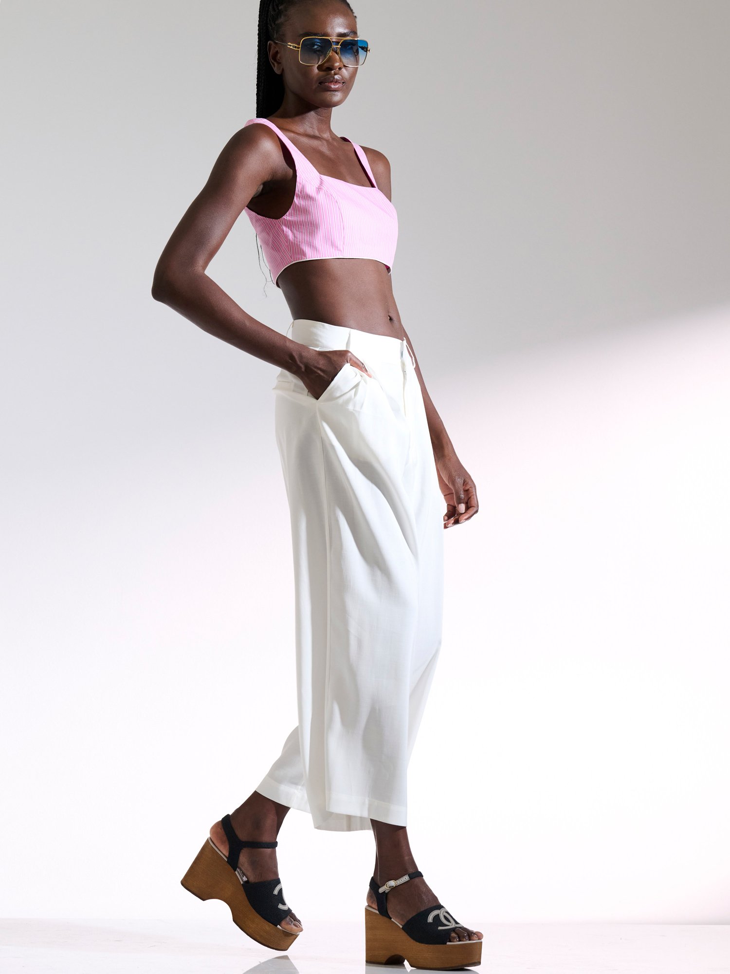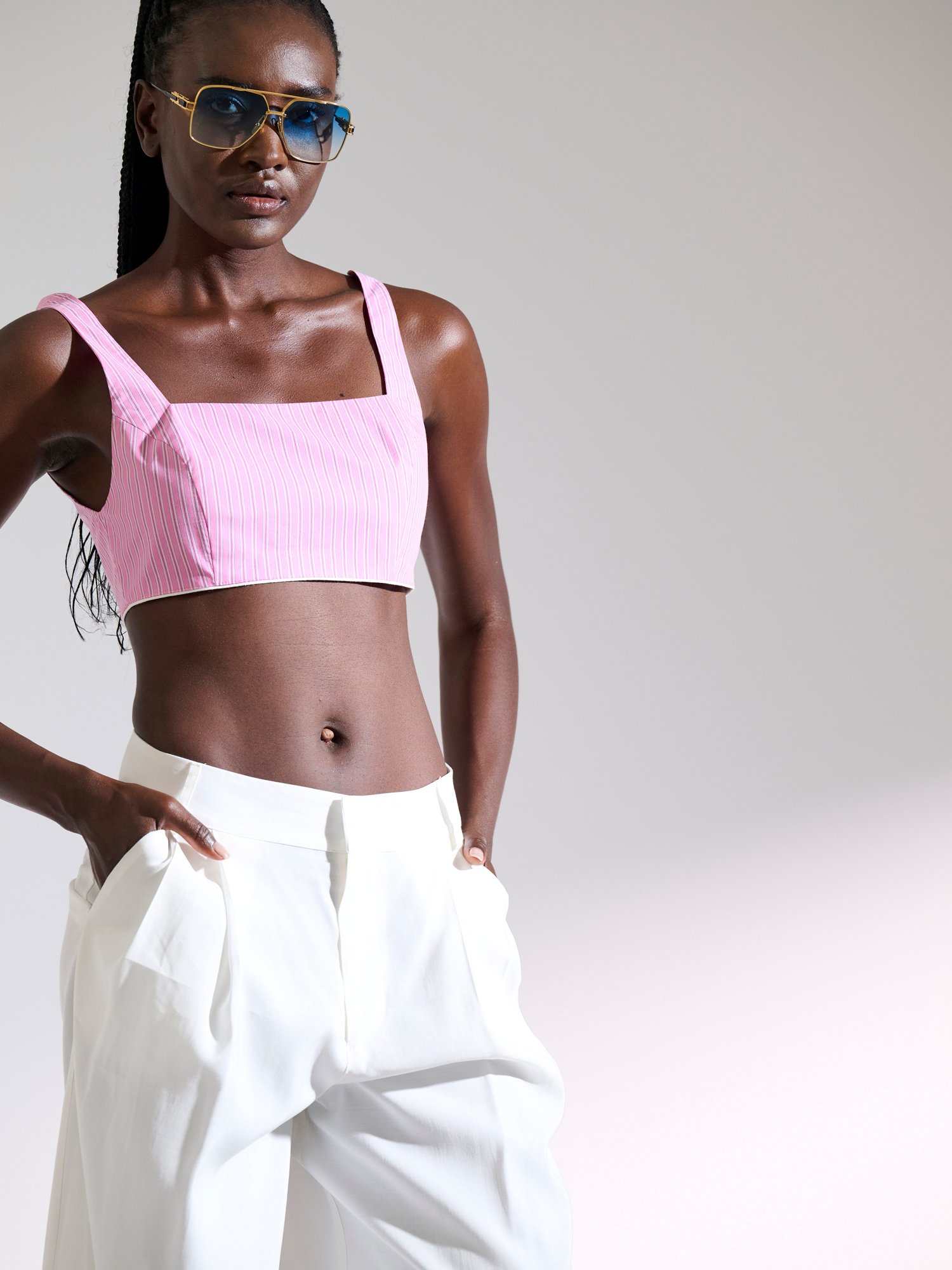 Κροπ τοπ ριγέ με τιράντες από βαμβακερή ποπλίνα με μικρή ελαστικότητα σε αποχρώσεις ροζ και λευκό.