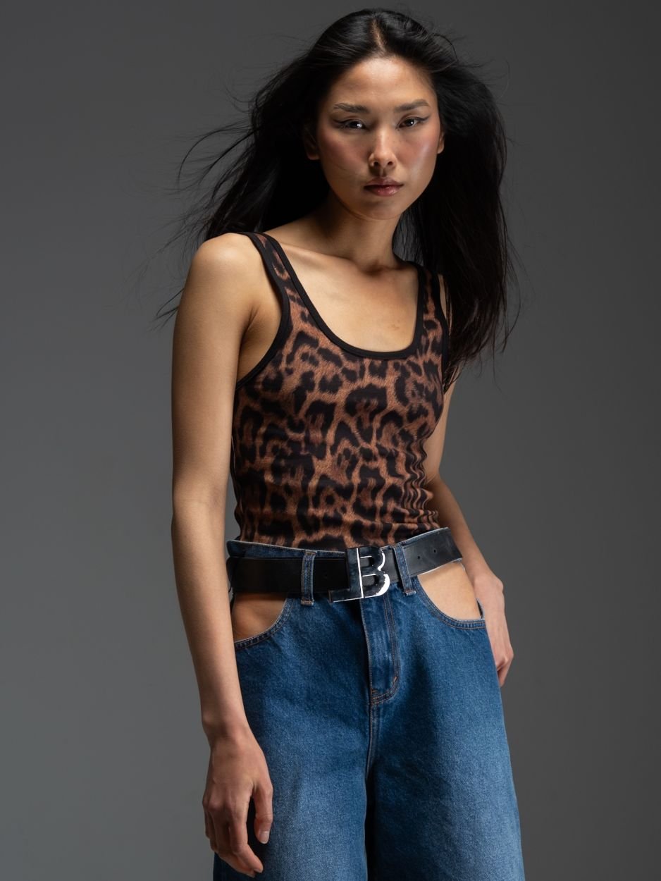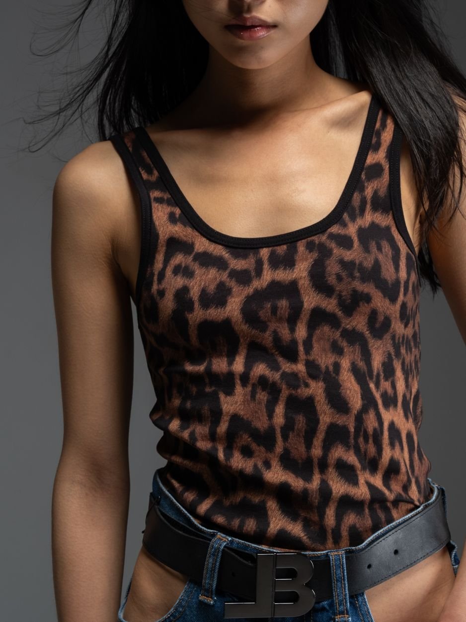 Το ιδιαίτερο leopard print της χαρίζει δυναμικό χαρακτήρα, ενώ οι μαύρες λεπτομέρειες με στρας προσθέτουν πιο rock αισθητική και ξεχωριστό ύφος.