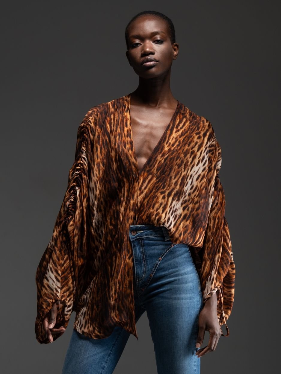 Ξεχωρίζει για το χειροποίητο animal print σε καφέ αποχρώσεις, που δίνει ένταση, δυναμισμό και μία πιο τολμηρή θηλυκή αισθητική.
