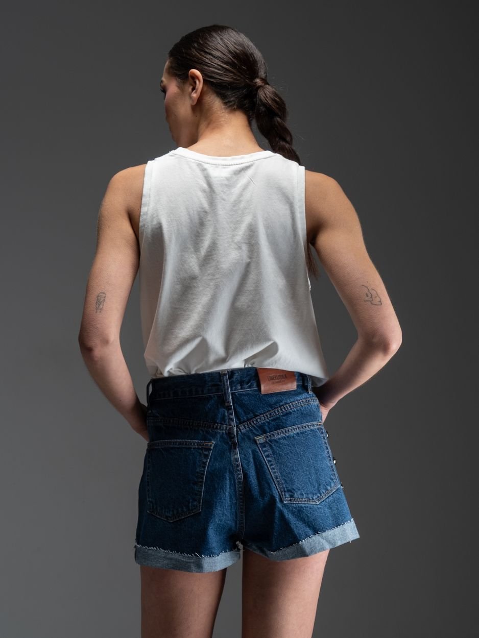 Μπλε τζιν σορτσάκι με τρουκς στο πλάι DEVEN