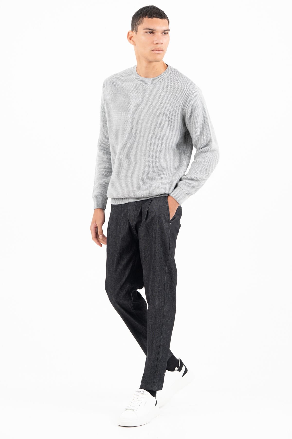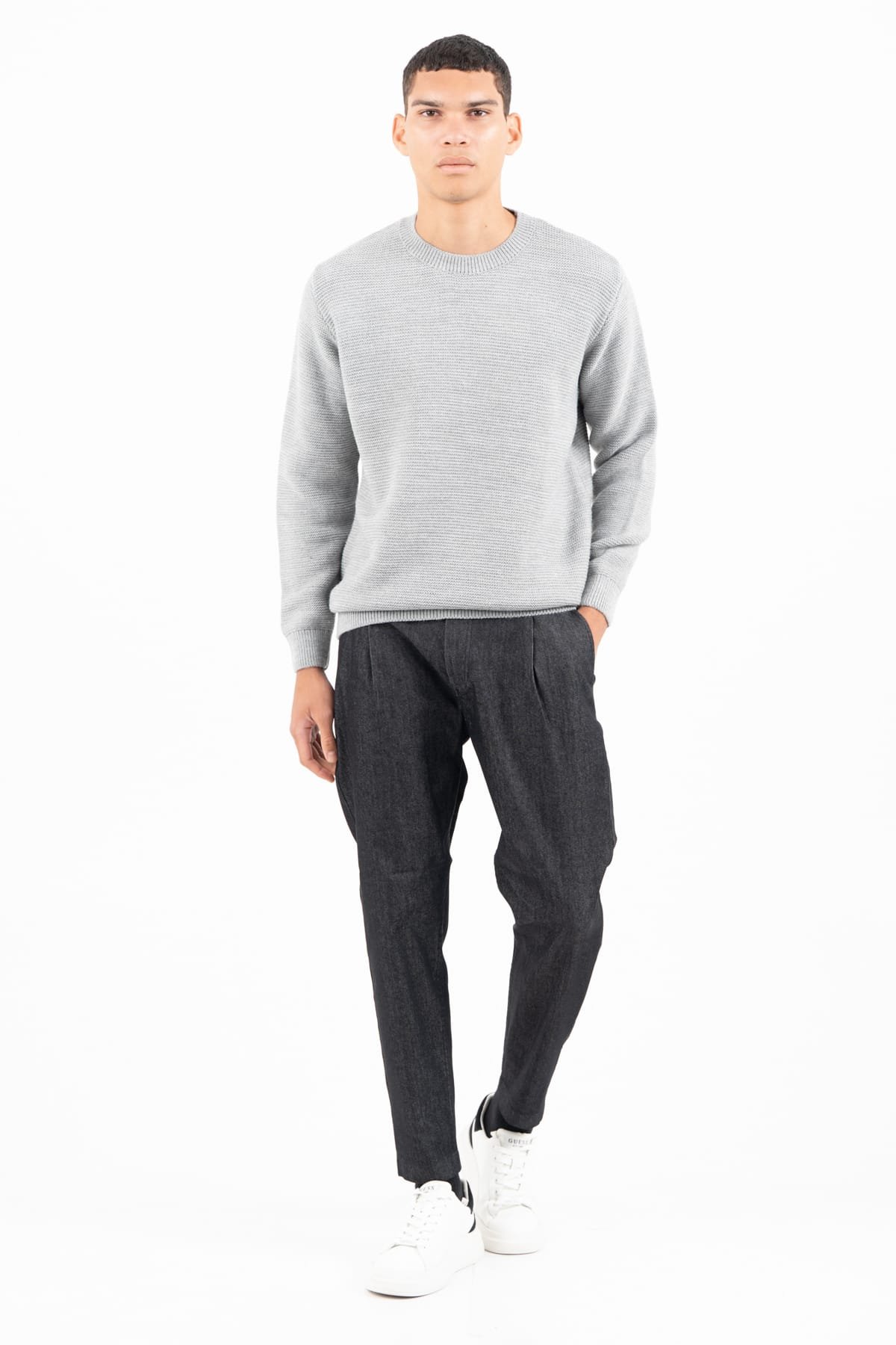 -Πλεκτό λαιμόκοψη σε ζακαάρ πλέξη -Σύνθεση:70%ACR30%COTTON -Διαστάσεις μοντέλου: Ύψος 189 cm, Βάρος 79 kg -Το μοντέλο φοράει M