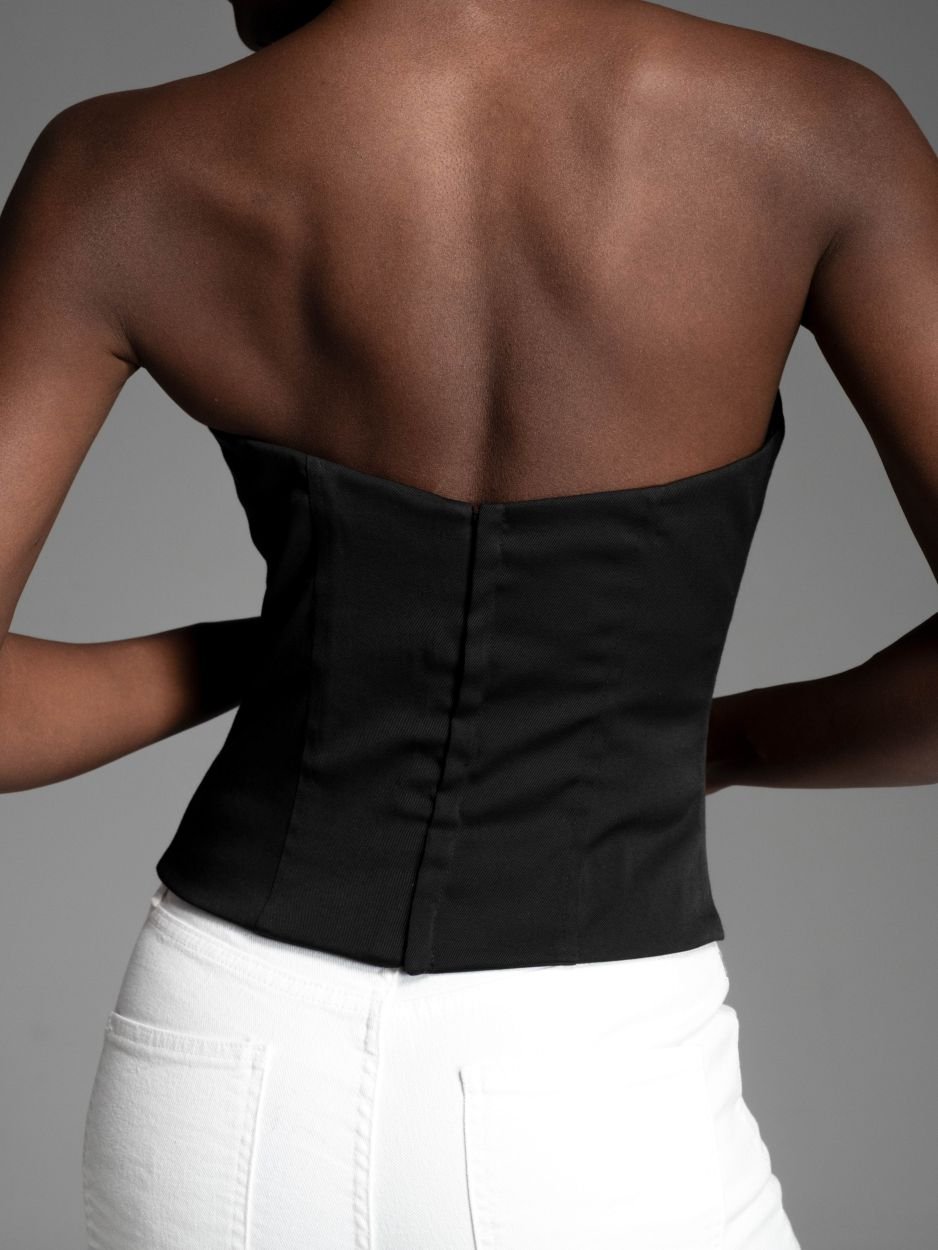 Ένα κομμάτι που στέκεται μόνο του ή ολοκληρώνει ένα look με σακάκι — καθαρό, τολμηρό, αβίαστα θηλυκό.