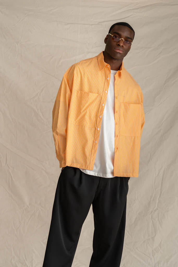 Πουκάμισο Boxy με γιακά. 100% βαμβακερό ύφασμα Το μοντέλο είναι 1,85 ύψος , 86kg και φοράει μέγεθος L/XL.