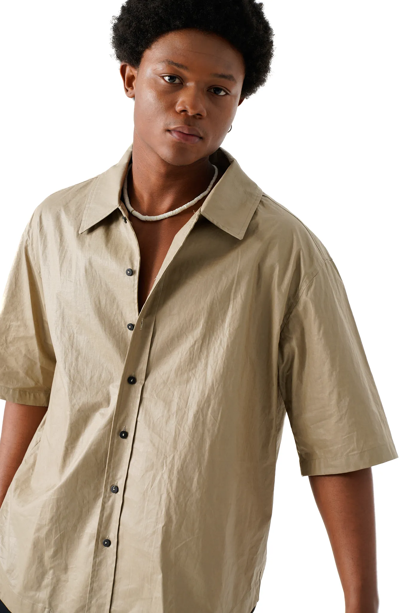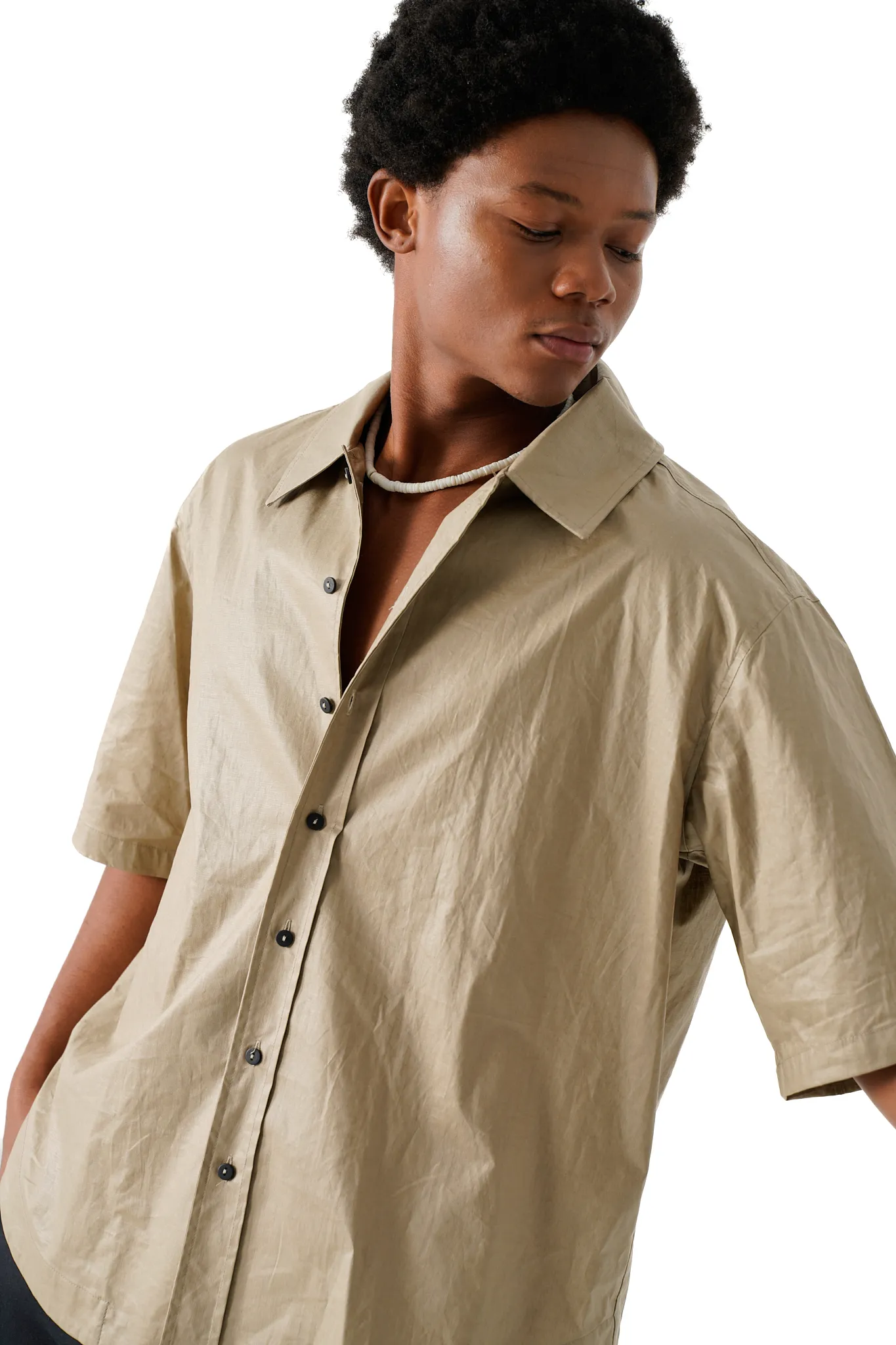 Boxy-fit collared shirt with short sleeves made of a cotton and bamboo blend. Hem with side vents. Button-up front.