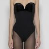 Black cotton bustier style bodysuit with velvet Snap fastening at base Gentle hand wash ( the velvet must be excluded) Colour: Black Handmade in Greece