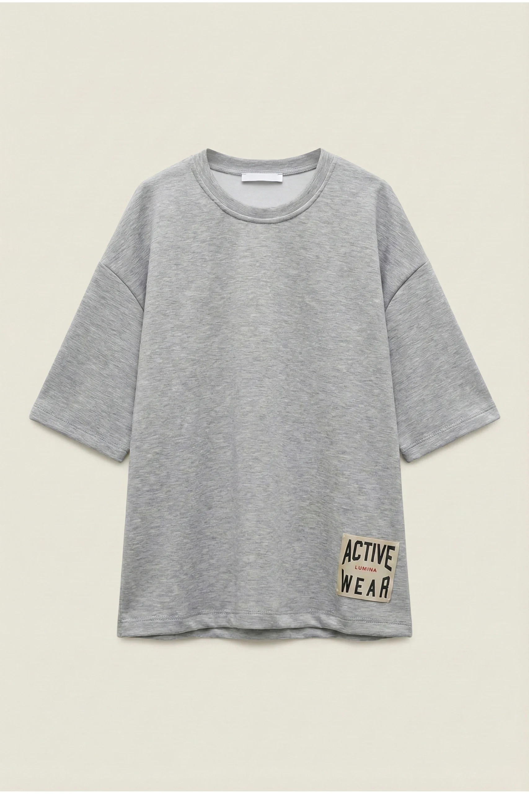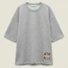 Crew neck T-shirt in viscose blend. Patch applied on the bottom.