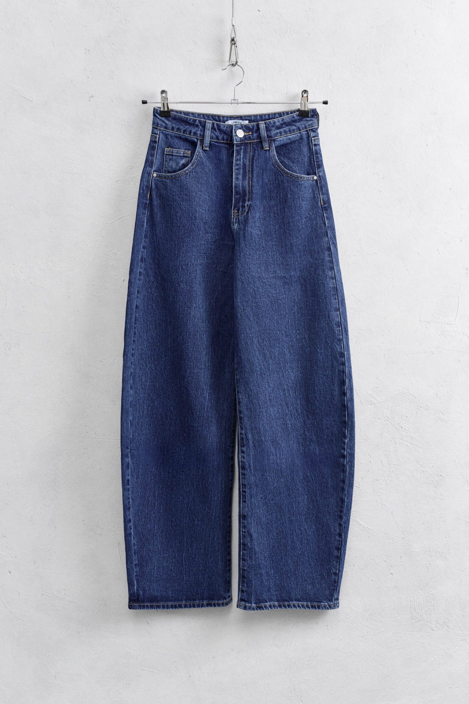 Cotton blend balloon jeans. 5 pockets. Zip and button closure. Regular fit, available in size S/M/L.