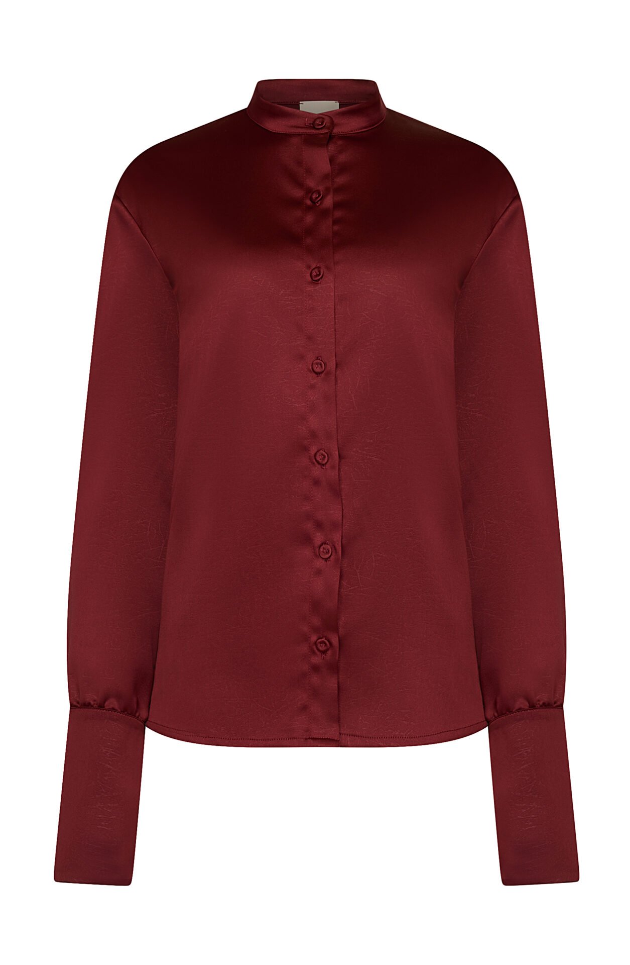 A silky touch shirt in wine and black: a must-have piece of your office wardrobe. Regular fit and fabric buttons. Match it with Lilith Pants and Kallisti Bag for the perfect monochrome ensemble.