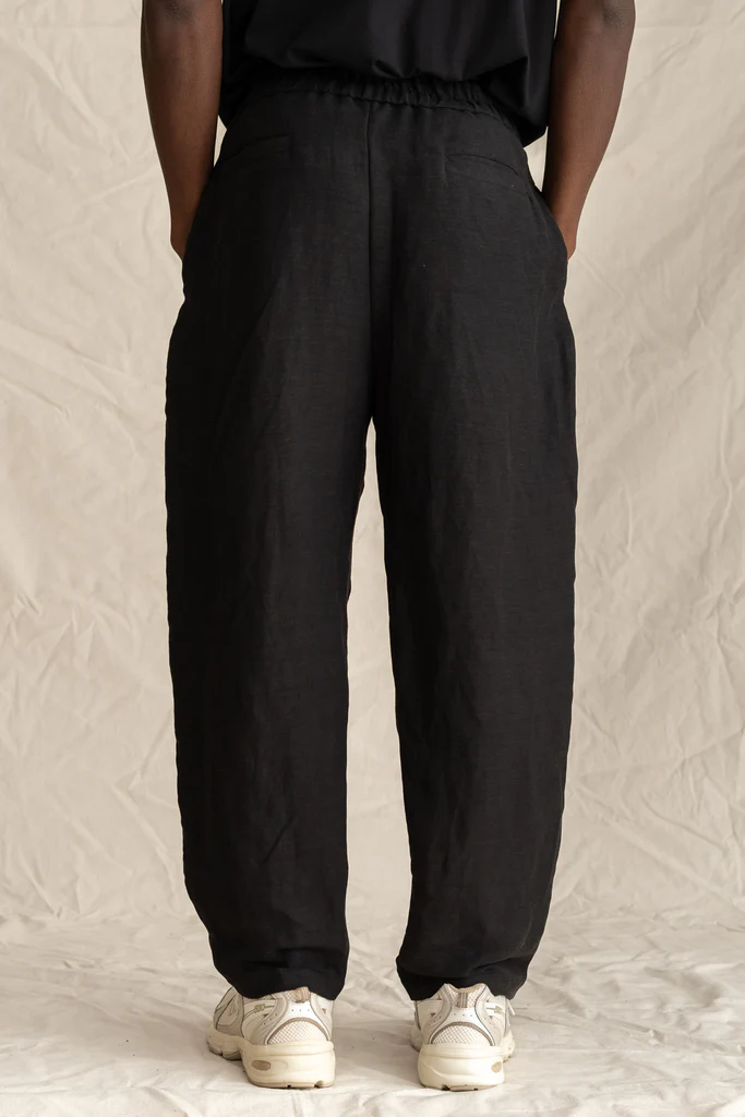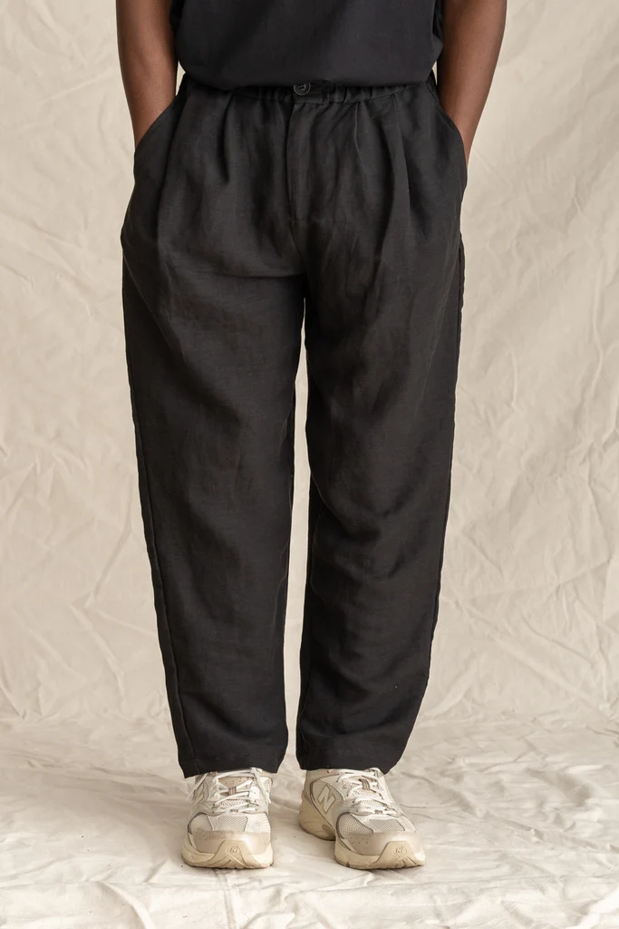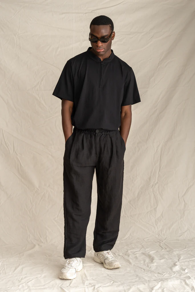 Παντελόνι Λινό relaxed fit. Στη μέση έχει κουμπί με φερμουάρ και λάστιχο για καλύτερη εφαρμογή. Το μοντέλο είναι 1,85 ύψος, 86kg και φοράει μέγεθος L/XL.