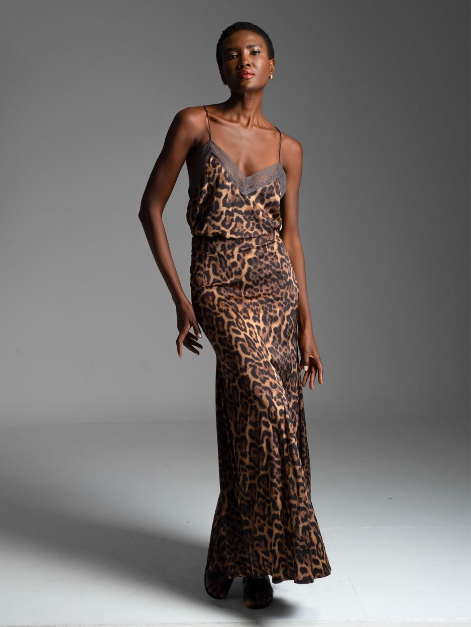 με λεοπάρ print από μαλακό μείγμα βισκόζης με ελαστικότητα.