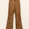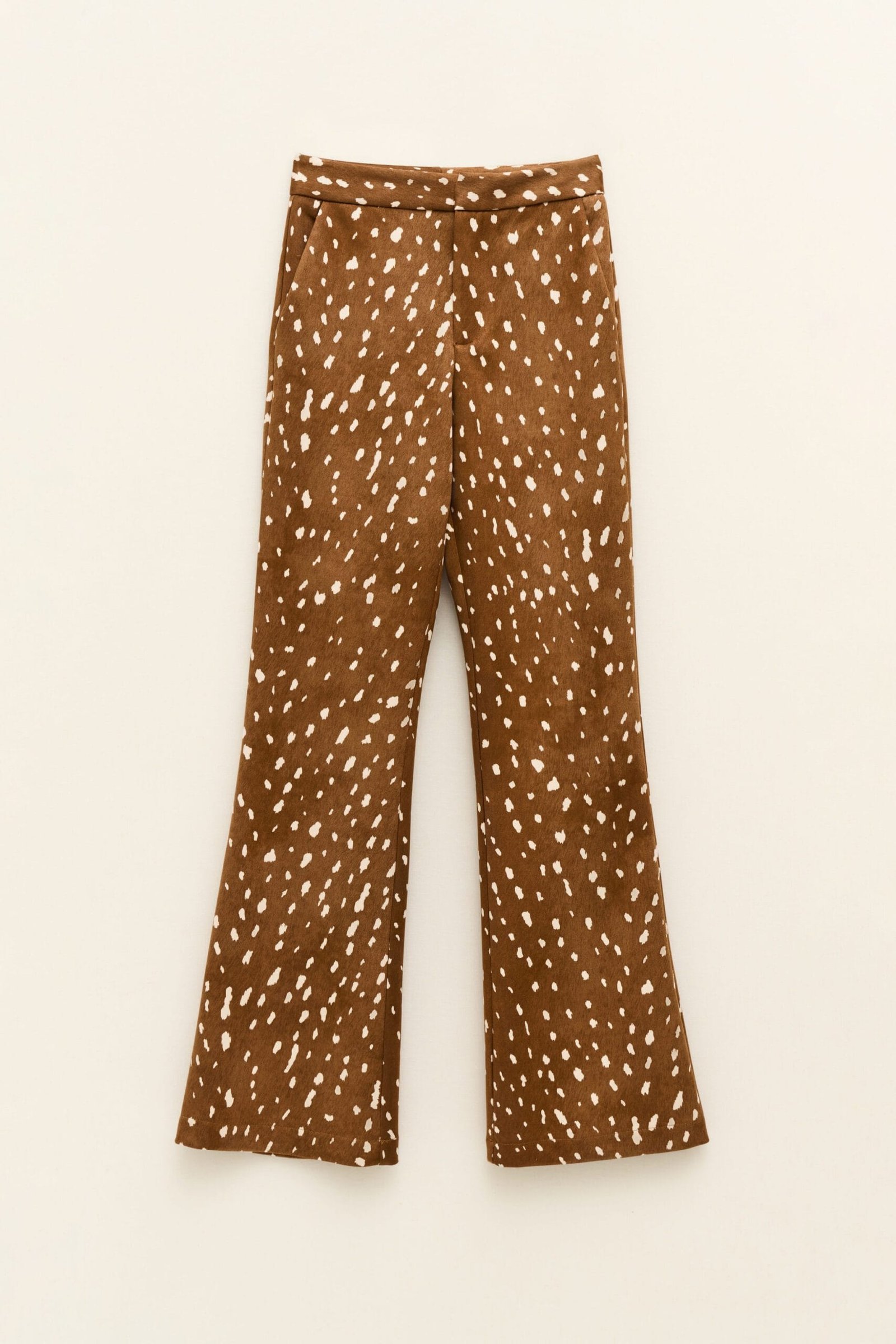 Flared trousers with animal print. Hight- waisted with belt loops.Features two side pockets.Front zip and hook closure.