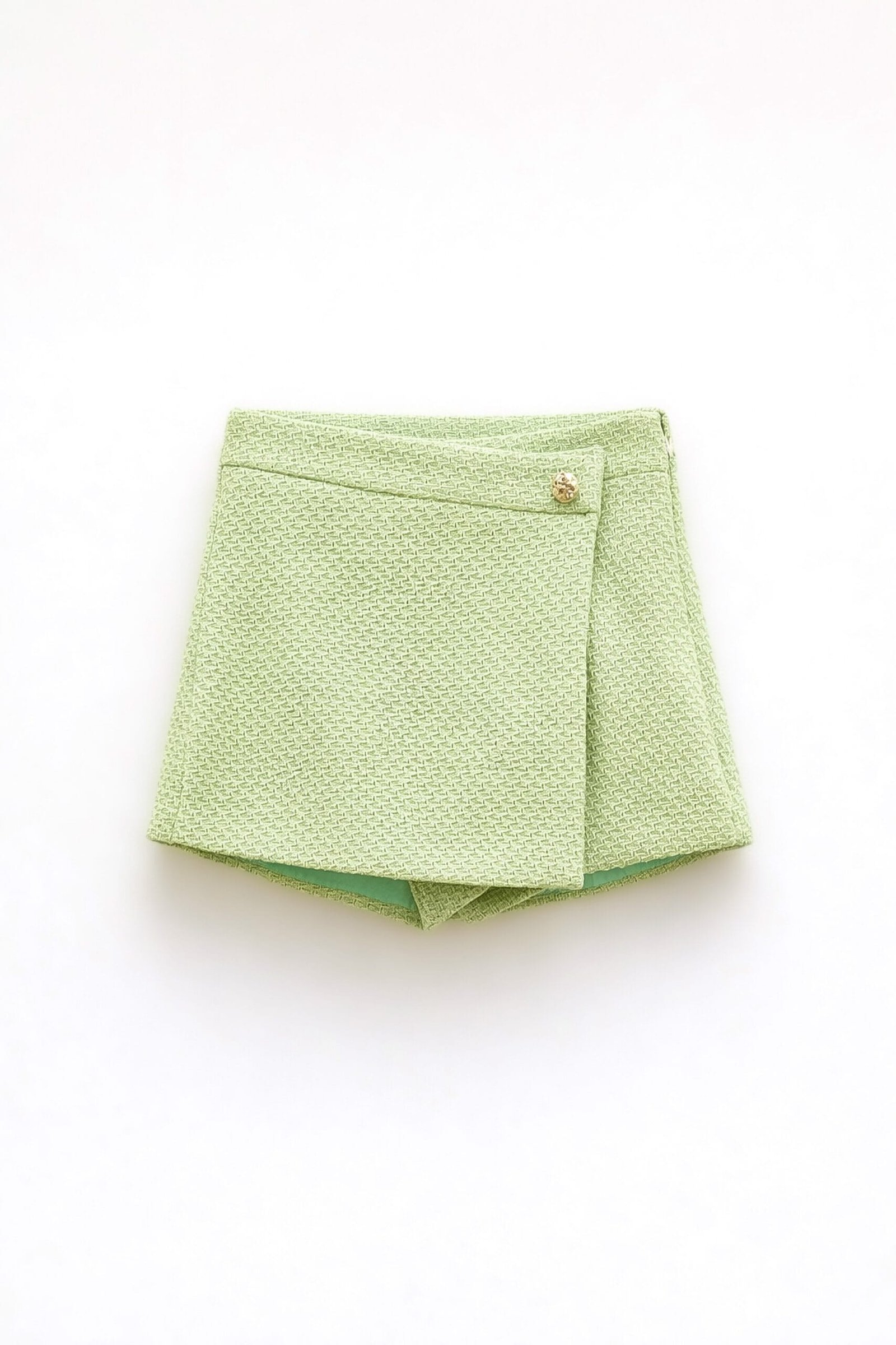 Shorts made of cotton blend. Front flap detail with button. Lining inside.
