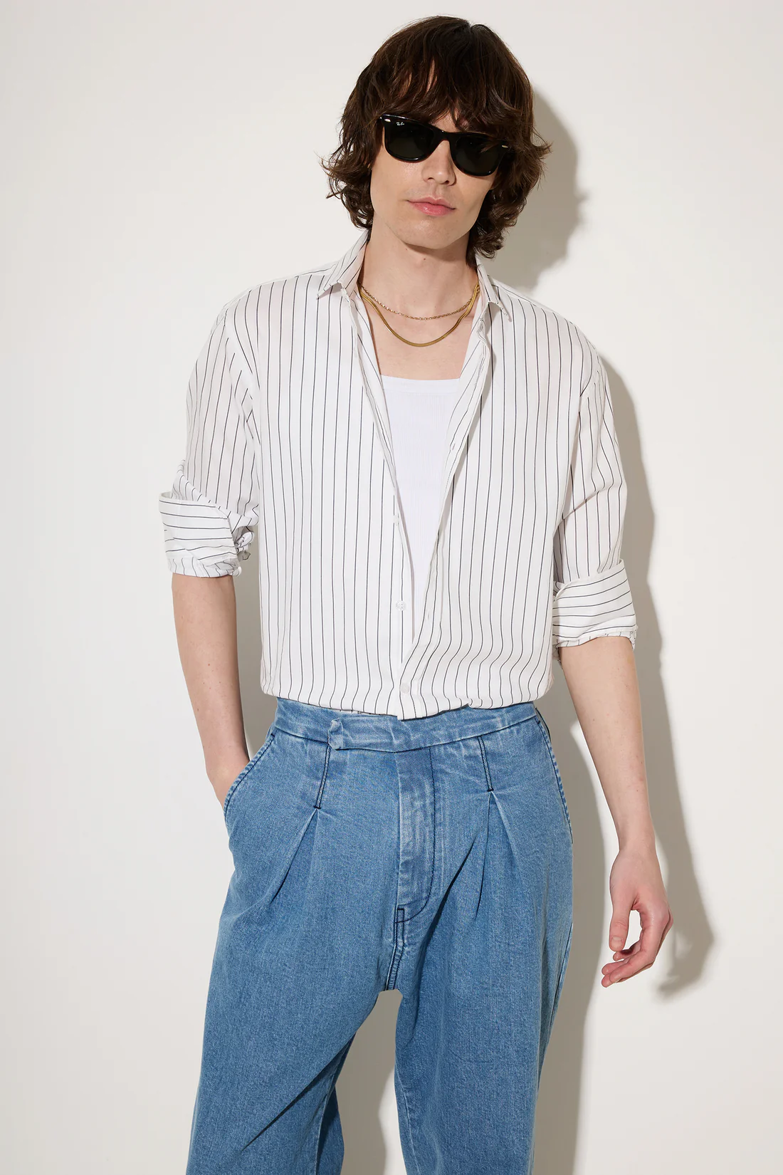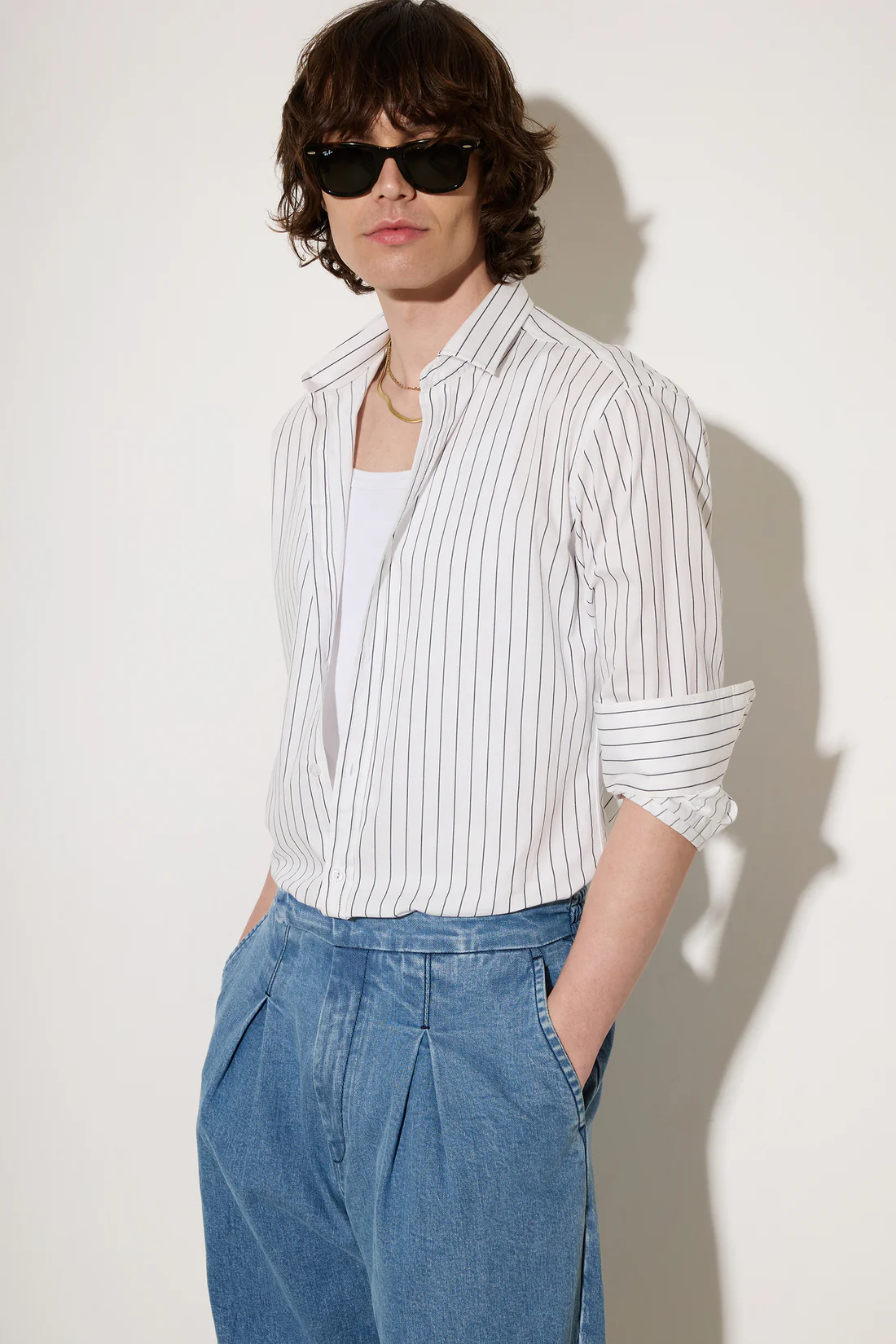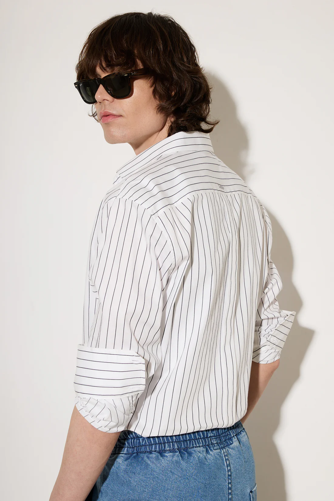 Standard fit Striped pattern Classic collar Longsleeves Buttoned cuffs Wash at 30° c Dry cleanable Iron at 110° c max Composition: 100% Organic Cotton Made in Greece COLOR:White