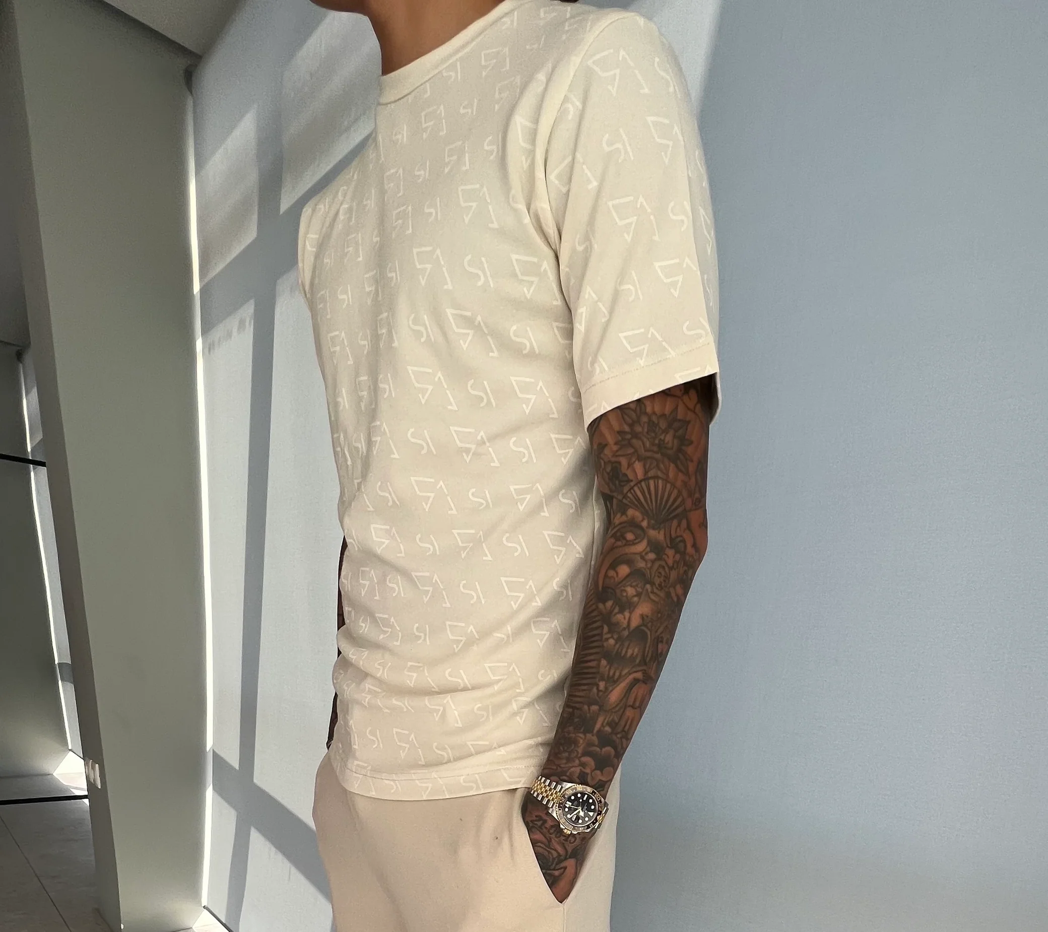 Beige Cotton Shirt blends everyday comfort with a touch of personalized style. The beige color is versatile, perfect for any occasion, while the embroidered initials add a unique twist. Stefania used her own special techniques to make this shirt stand out. Style it with SV SA Black pants. Limited stock available.