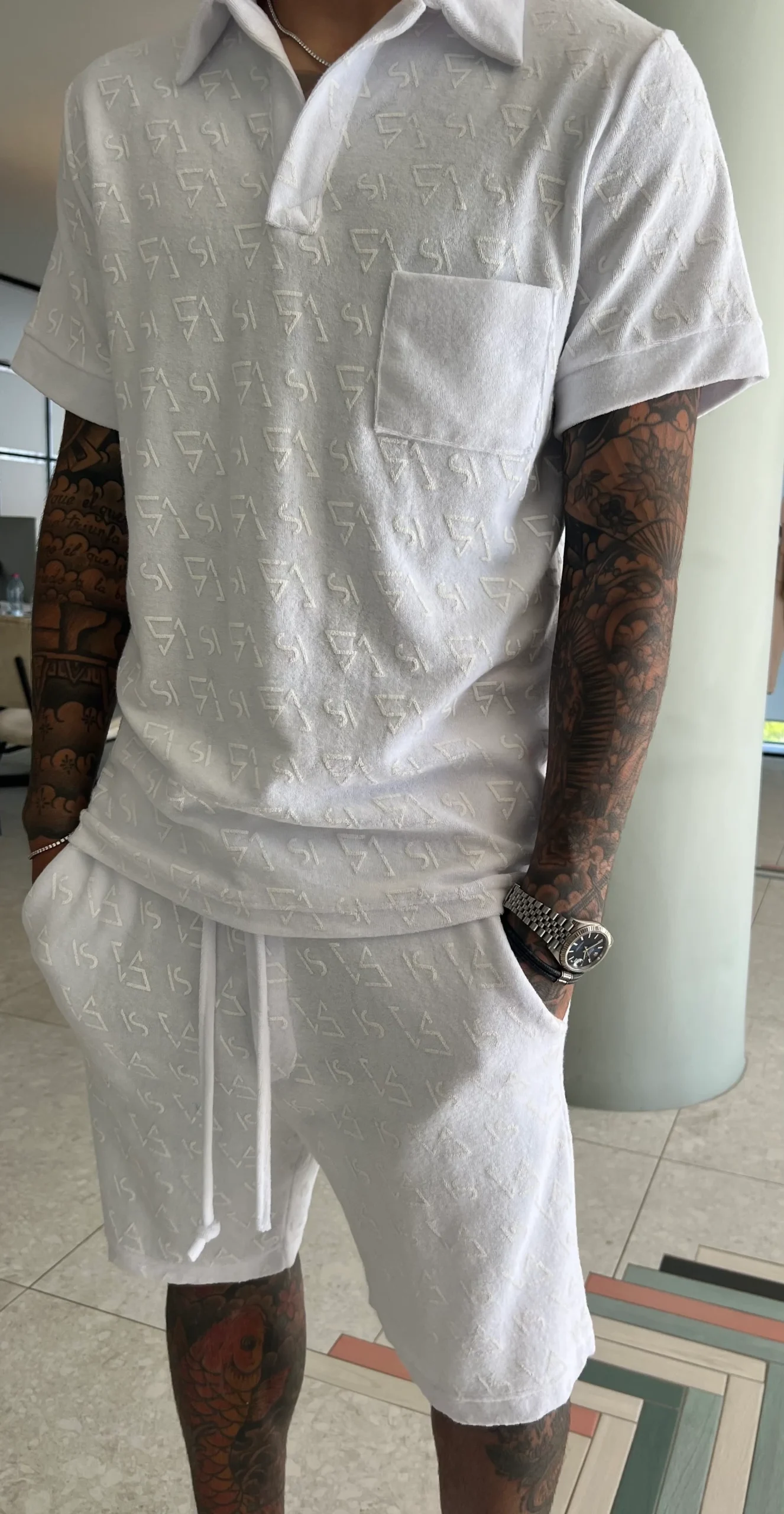 - Crafted from premium cotton, Toalla White Bermuda brings versatility to your wardrobe. It is a fit-for-all wear. The sleek and classic design is elevated by the embroidered SA x SV initials, a distinctive element of the collaboration. Versatile for casual or athleisure wear. Style it with Toalla White Shirt for a complete SA SV look. Limited stock available.