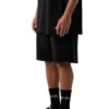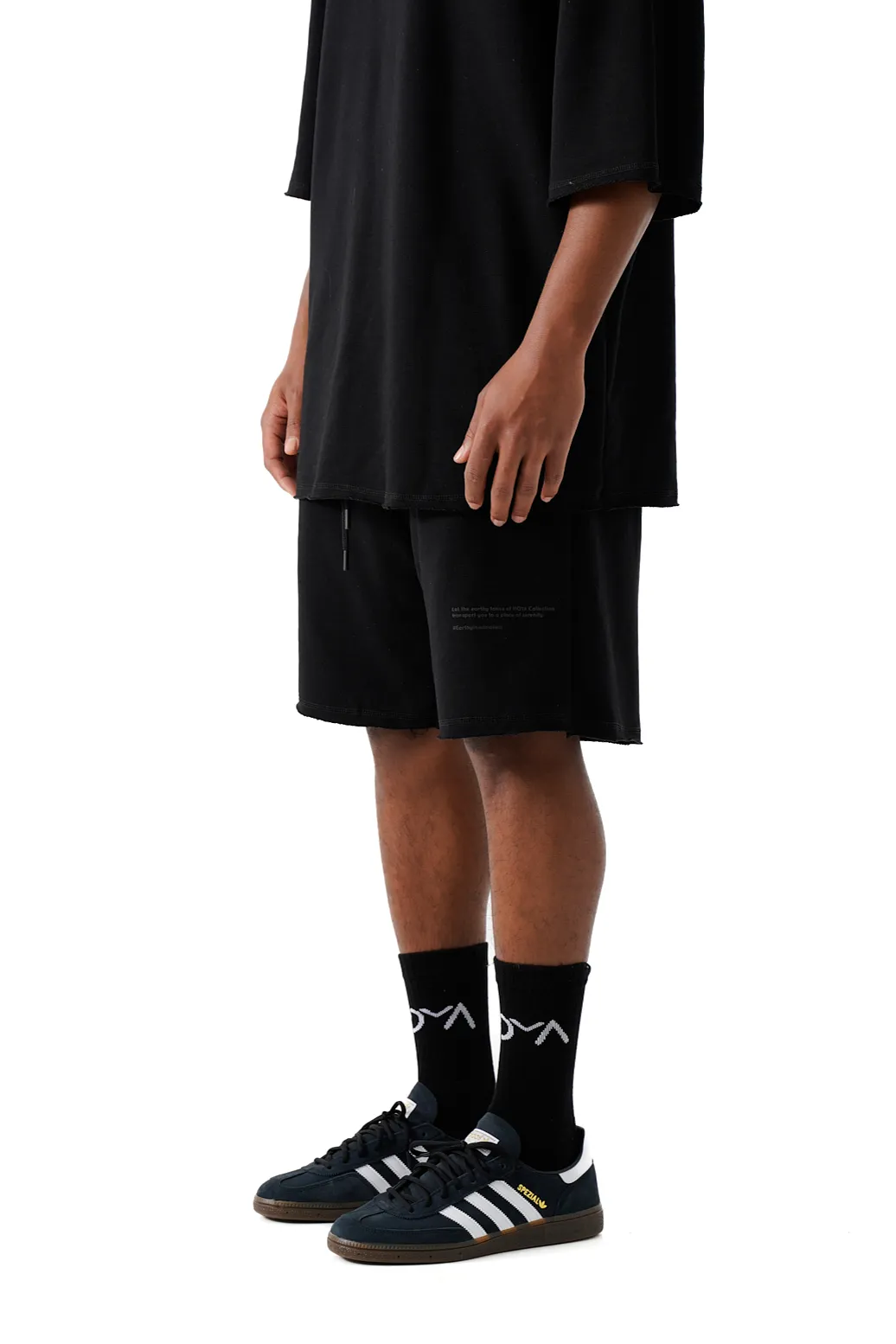 Relaxed-fit shorts. Adjustable elasticated waistband with drawstring. Front pockets and contrast patch on the leg.