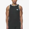 black mesh tank top slim fit baby blue rubber patch to the front 150gsm