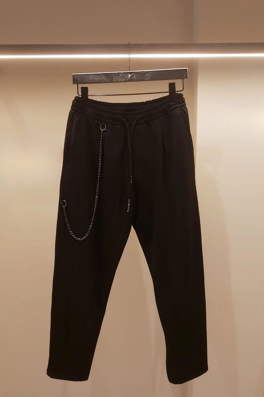 Cool fit Extractable side chain Elastic waistband with cord Two front pockets Two back pocket Front pleats Wash at 30° Dry cleanable Iron at 110° c max Composition: 60% Rayon, 35% Nylon, 5% Spantex Made in Greece