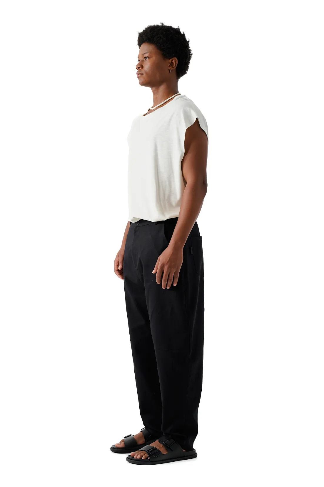 Boxy-fit tank top with a round neck.