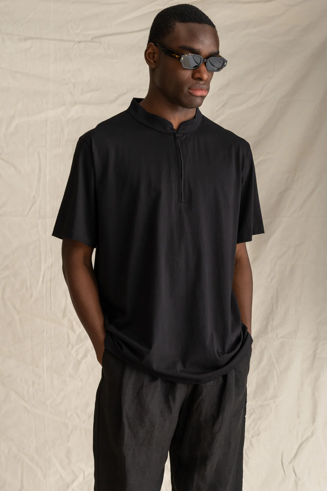 Μπλούζα kiub κοντομάνικη με φερμουάρ. Το μοντέλο είναι 1,85 ύψος, 86kg και φοράει μέγεθος L/XL